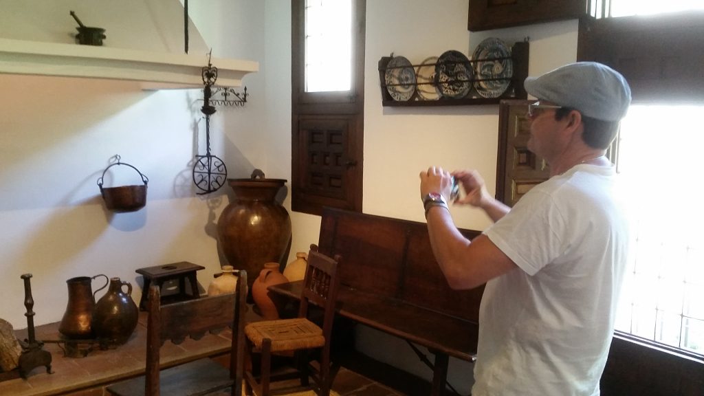 Iniciado el Tour guiado, comenzamos a subir las empinadas escaleras y se nos revela un museo de una belleza esencial, muy austera pero cargada de detalles, llama la atención su estudio, el recinto de su creación, la cocina y el comedor con vistas al huerto interno, donde están intacto todos los utensilios de la época y su habitación con una ventana para poder mirar a través de ella el altar de capilla familiar en el interior de su casa y que tiene como talla a San Isidro, el patrón de la ciudad de Madrid.